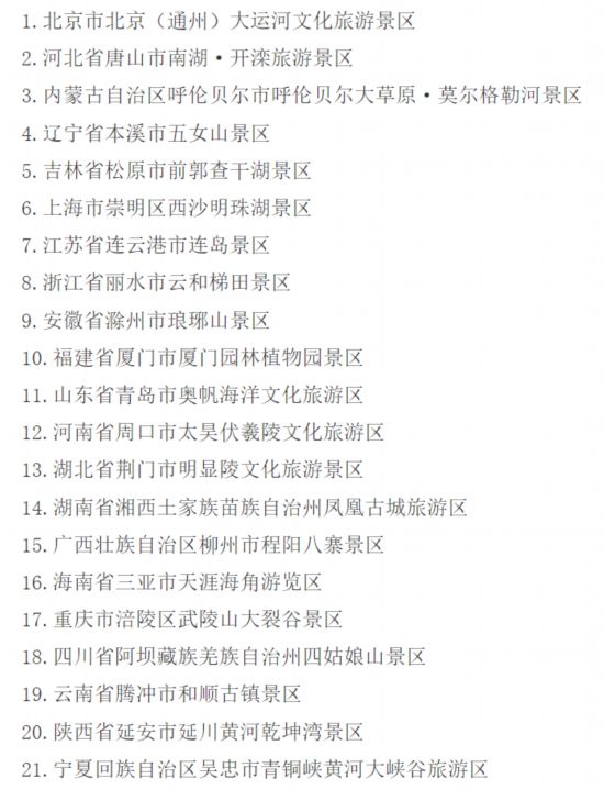 杏宇娱乐:国家5A级旅游景区新增21家